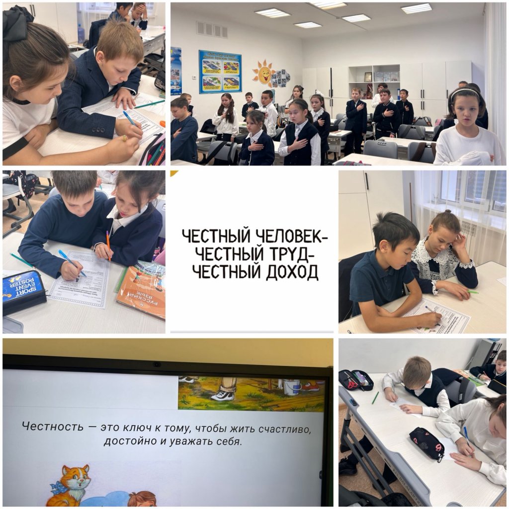 Тәрбие жұмысының жоспары бойынша 4 "В" сыныпта " адал еңбек-адал адам-адал азамат "тақырыбында сынып сағаты өтті/қауіпсіздік сабағы
