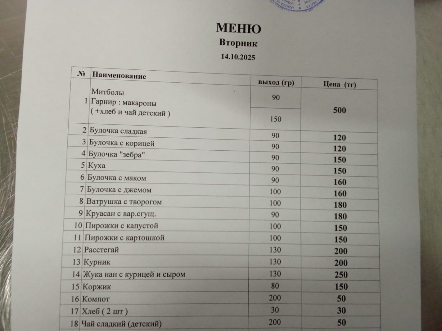 Тегін мәзір 14.10.2025