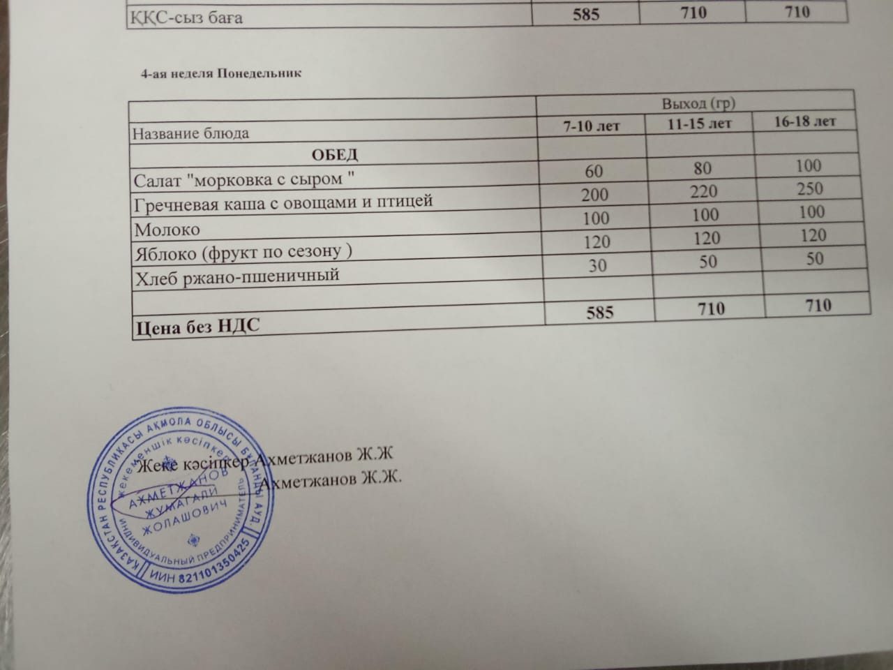 Тегін мәзір 22.09.2025